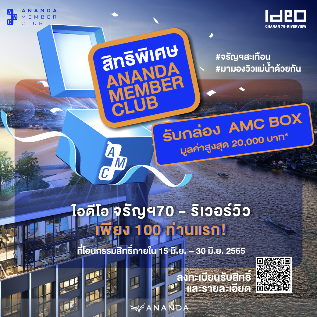 1. เพียงโอนกรรมสิทธิ์ห้องชุดโครงการ Ideo Charan 70-Riverview มีสิทธิ์ได้รับกล่องสุ่ม AMC BOX มูลค่ารวม 86,300 บาท โดยมีรายละเอียดของรางวัลดังนี้