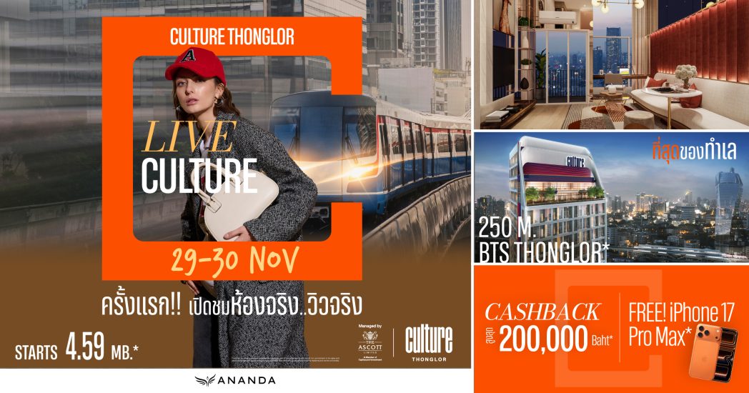 แต่สำหรับใครที่จองห้อง Culture Thonglor เอาไว้ พี่กอล์ฟก็อยากให้รีบมาโอนเป็นเจ้าของนะครับเพราะตอนนี้กระแสแรงจริงๆ รับรองว่าโครงการไม่ทำให้ผิดหวังแน่นอนครับ ส่วนใครที่ยังไม่ได้ตัดสินใจ สามารถแวะเข้ามาชมโครงการได้ในวันที่ 29 – 30 พฤศจิกายน 2568 นี้นะครับ