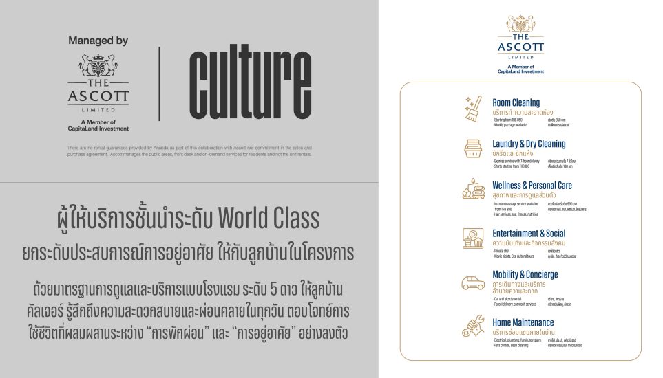 Culture ทั้ง 2 โครงการ ต่างคาแรกเตอร์ แต่มาตรฐานเดียวกัน