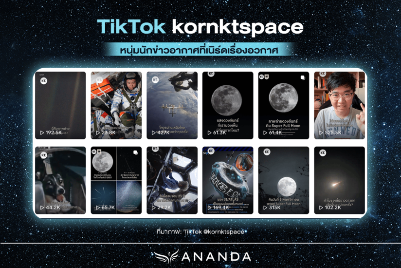ใครว่าเรื่องอวกาศต้องน่าเบื่อ? ช่อง TikTok และ YouTube ของ kornktspace เป็นตัวอย่างที่ดีของการนำเสนอข้อมูลทางวิทยาศาสตร์ ที่เข้าถึงง่ายและสนุกสนาน กรทอง วิริยะเศวตกุล คือคอนเทนต์ครีเอเตอร์ด้านอวกาศ เจ้าของช่อง KornKT และคอลัมนิสต์ให้กับสำนักข่าวชั้นนำ ซึ่งเคยเป็นถึงแฟนพันธุ์แท้ระบบสุริยะมาแล้ว ซึ่งช่อง kornktspace ไม่ได้แค่อ่านข่าว แต่ยังทำคอนเทนต์ที่อธิบายเรื่องราวทางดาราศาสตร์ และวิทยาศาสตร์อวกาศที่ซับซ้อนให้กลายเป็นเรื่องที่เข้าใจง่ายและน่าติดตาม ด้วยภาษาที่เป็นกันเองและข้อมูลที่แม่นยำ