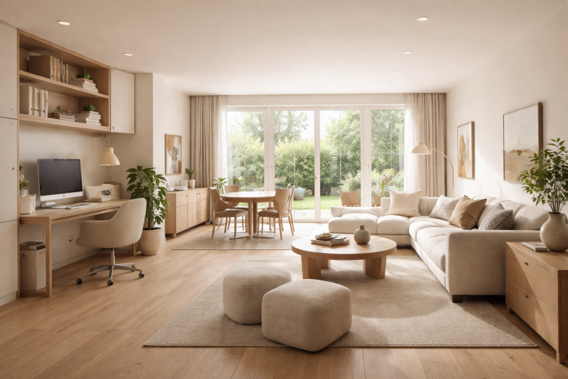 บ้านยุคใหม่ควรออกแบบพื้นที่ให้สามารถปรับเปลี่ยนการใช้งานได้ ไม่ว่าจะเป็นมุมทำงานจากบ้าน พื้นที่พักผ่อน หรือพื้นที่ใช้เวลาร่วมกันของครอบครัว ความยืดหยุ่นนี้ช่วยให้บ้านรองรับชีวิตจริงในทุกช่วงเวลา