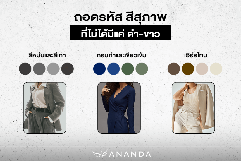 หลายคนมักจะติดอยู่กับความคิดที่ว่า ‘ชุดสุภาพ’ ต้องมีแค่สีขาวและสีดำเท่านั้น แต่ไม่จริงเสมอไป ความจริงแล้ว โทนสีสุภาพ มีความหลากหลายมากกว่านั้นมาก เพื่อน ๆ สามารถเลือกโทนสี จับแมตช์สไตล์อย่างเป็นตัวเองได้ ซึ่งแบ่งกลุ่มสีเป็นดังนี้