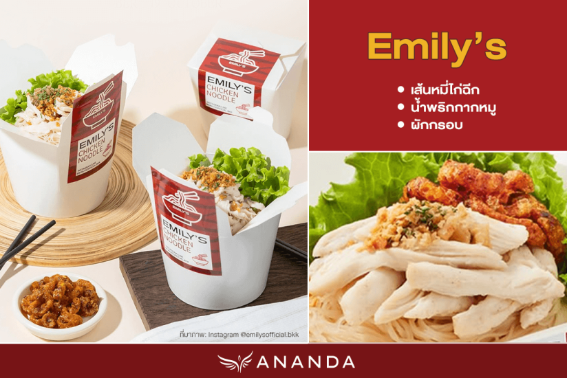 ถ้าพูดถึงเส้นหมี่ไก่ฉีกที่ฮอตที่สุดในเวลานี้ ชื่อของ Emily’s ต้องมาเป็นอันดับต้น ๆ อย่างแน่นอน ด้วยกระแสตอบรับที่ดีอย่างต่อเนื่องและคิวยาวเหยียดไม่ว่าจะไปเปิด Pop-up ที่ไหน ทำให้ร้านนี้กลายเป็นตำนานบทใหม่ของหมี่ไก่ฉีกที่หลายคนบอกว่า ‘ราคาแรงแต่ยอมจ่าย’