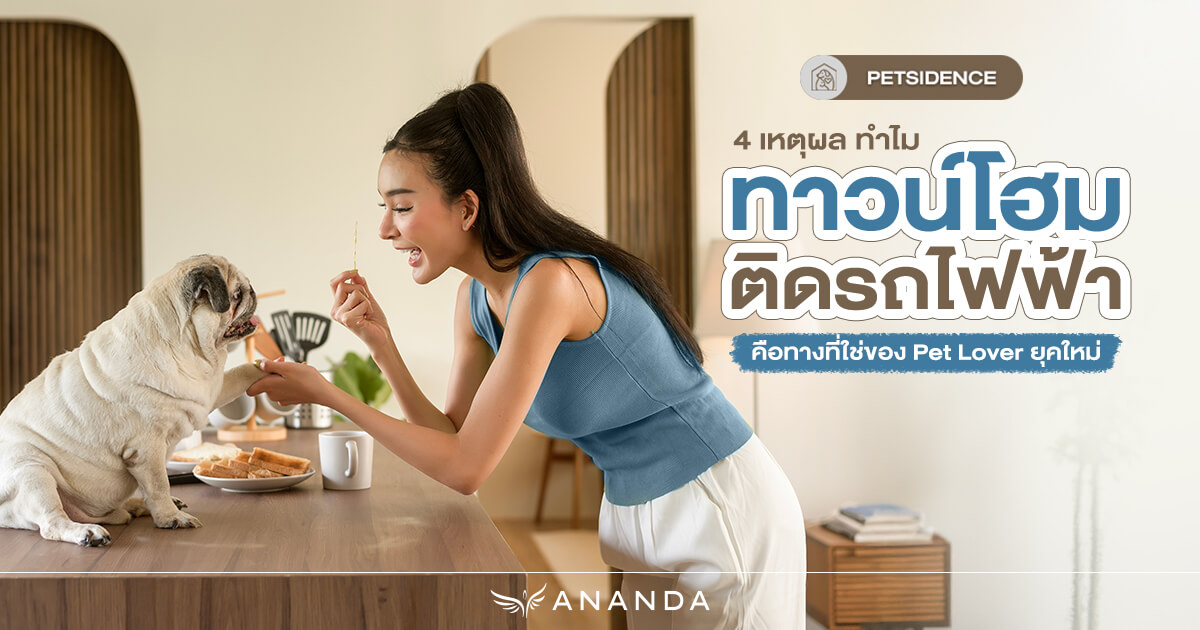 นี่คือเหตุผลที่ ‘ทาวน์โฮมติดรถไฟฟ้า’ ได้กลายมาเป็นตัวเลือกที่ลงตัวและตอบโจทย์ Pet Lover ยุคใหม่ได้อย่างน่าทึ่ง เพราะมันช่วยแก้ปัญหาคลาสสิกของคนเมืองได้หลายเรื่องพร้อมกันอย่างที่ไม่เคยมีมาก่อน ซึ่ง 4 เหตุผลหลัก ๆ มีดังนี้