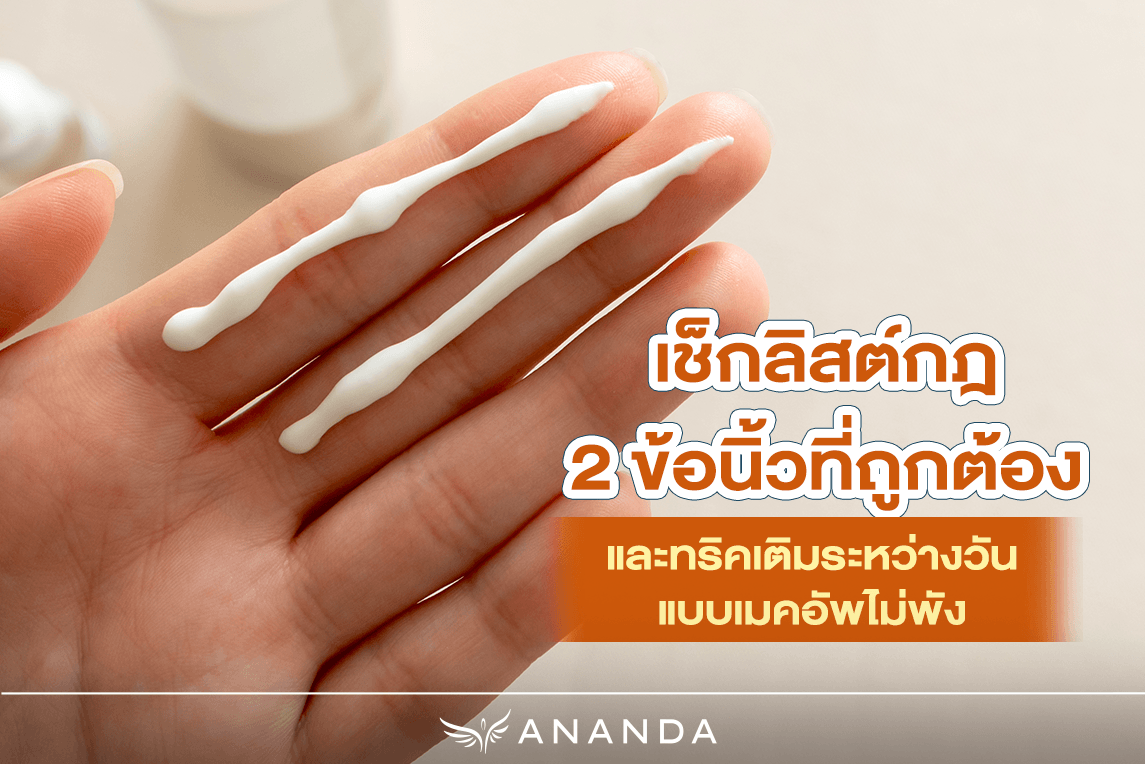 • เน้นความสม่ำเสมอ ปริมาณที่ใช้สำคัญพอ ๆ กับค่าพลังกันแดด กฎ 2 ข้อนิ้วคือมาตรฐานขั้นต่ำที่ผิวต้องการ